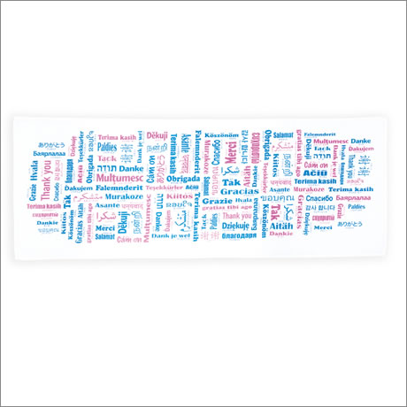 訪日外国人向けアイテム!色鮮やかな言語のデザインで人々の目を引くてぬぐい