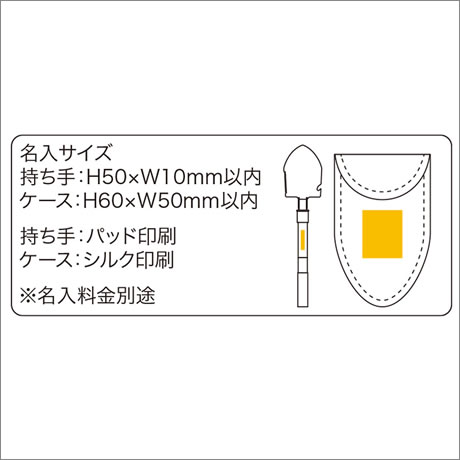 名入れサイズ:持ち手H50×W10mm以内パッド印刷、ケースH60×W50mm以内シルク印刷1色まで