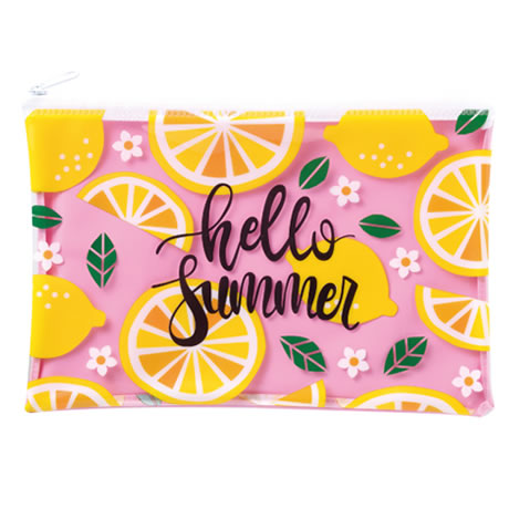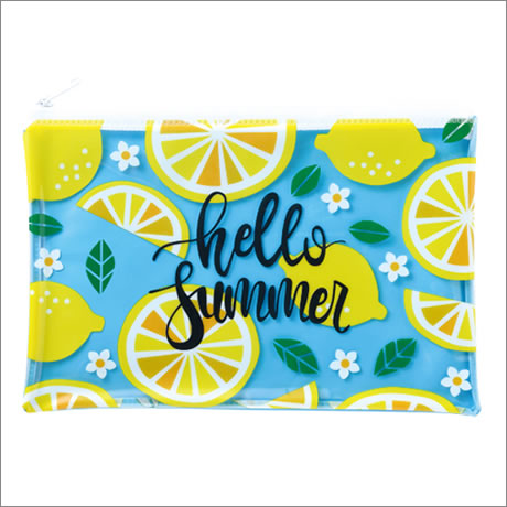 爽やかなレモン柄。中身が見えるクリアタイプでコスメを入れるのにぴったり