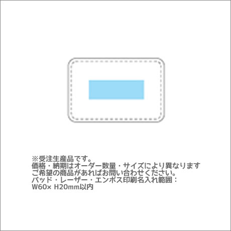 価格・納期はオーダー数量・サイズにより異なりますのでご希望の商品があればお問い合わせください。 パッド・レーザー・エンボス印刷名入れ範囲:W60×H20mm以内 |