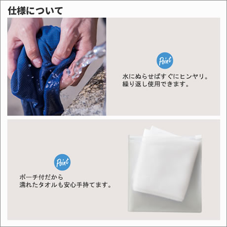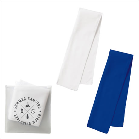 持ち運びしやすいポーチ付きの涼感マフラータオルです。水に濡らせばすぐにひんやりする涼感タオルは夏の暑さ対策の必需品です。