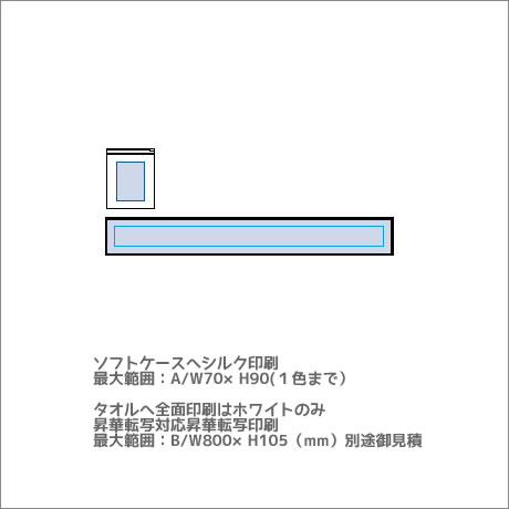 ■タオルへ全面印刷はホワイトのみ昇華転写対応 昇華転写印刷 最大範囲:B/W800×H105(mm)別途御見積 |