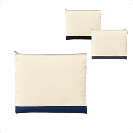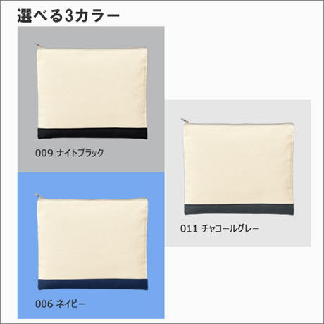 トートバッグで人気のある「カラーボトムシリーズ」にポーチが登場しました。使いやすい8オンスの生地を使用し、男女ともに人気の高いフラット型のデザイン。