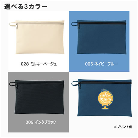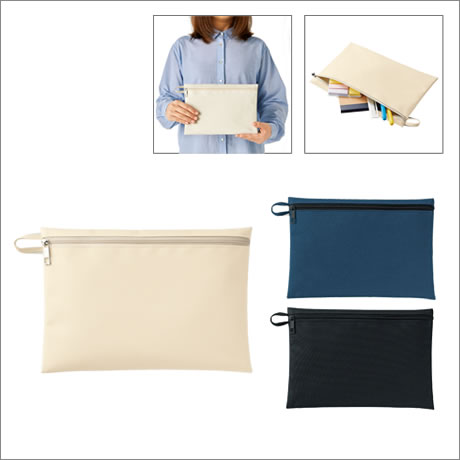厚手のポリエステル生地を使用したフラットポーチです。