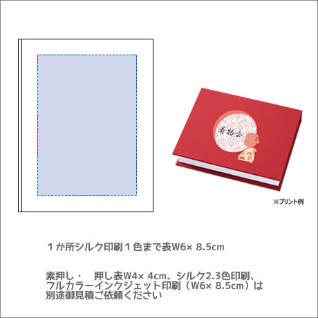 素押し・箔押し表W4×4cm、シルク2.3色印刷、フルカラーインクジェット印刷(W6×8.5cm)は別途御見積ご依頼ください |