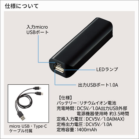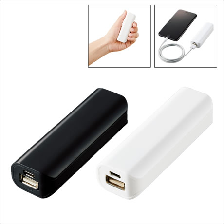 スマートフォン約1回分の充電が可能で、ポーチなどに入れての持ち運びにも便利なサイズです。