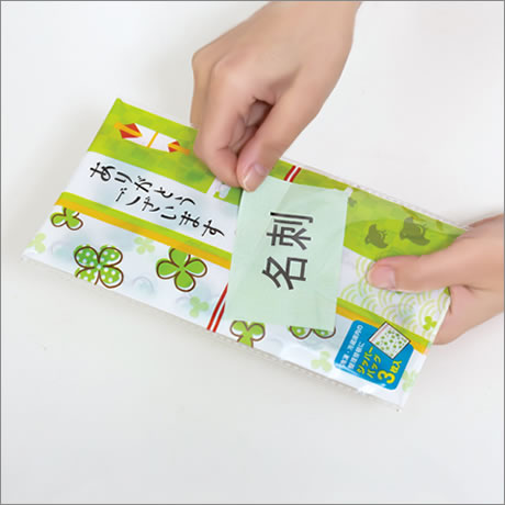 パッケージには「ありがとうございます」のメッセージがデザインされているから、 そのまま大切な方にプレゼントできます。 さらに、名刺カード用のポケットも付いていて、ノベルティとしてとっても優秀♪