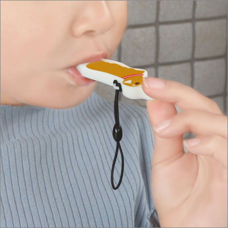 アクセサリー(根付け)として、バッグなどいろいろなところに取付けて、いつも一緒にお散歩を♪ いざという時には、思いっきり吹き鳴らしてください!