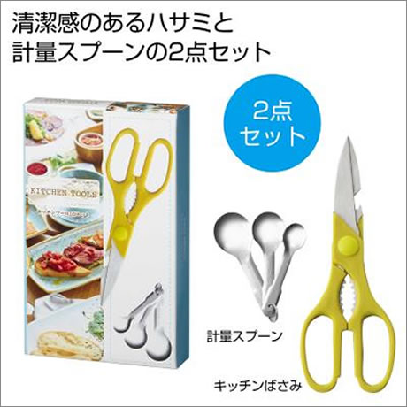 本体サイズ | キッチンばさみ/全長21cm メジャースプーン/大さじ1/2・小さじ1・小さじ1/2 |