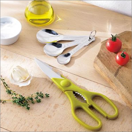 パパっと手軽にカットできるキッチンバサミと清潔感のあるステンレス製の計量スプーン