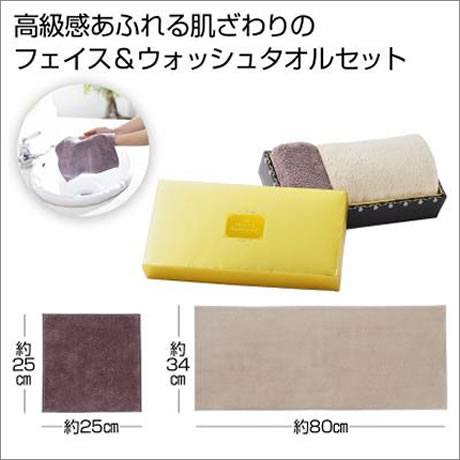 本体サイズ | フェイスタオル/約34×80cm ウォッシュタオル/約25×25cm |
