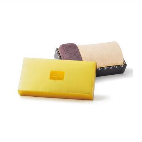 やわらかなタッチの2種のサイズのタオルをプレミアムなゴールドのギフトボックスに収めました。