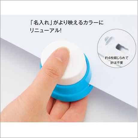 グッと押し込んで、4枚まで紙を綴じることができます。針を使わないのでシュレッダー時も分ける手間なし!展示会の記念品におすすめです。