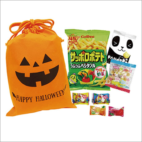 大好きなお菓子を詰め込んだ、オバケかぼちゃのハロウィン巾着入り!