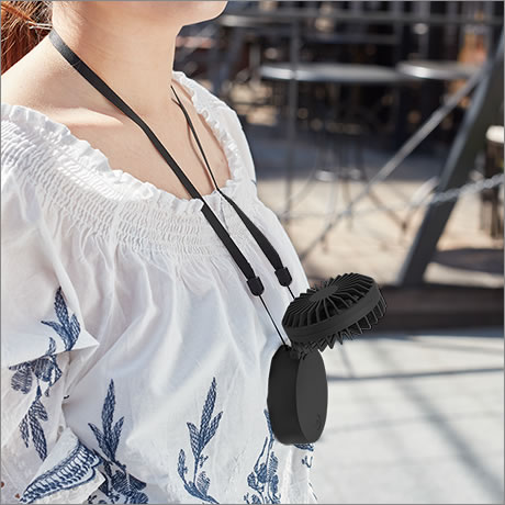 夏の定番アイテムであるファンに、新たに首掛けできるハンズフリータイプが登場しました。