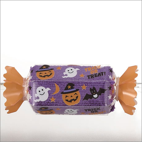 キャンディの形をした入れものに便利なハンドタオルが1枚入っています。柄があるのは入れ物だけだから、いつでも使える気遣いも。
