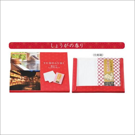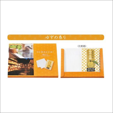 和テイストの入浴料と綿のミニタオルを、旅情誘う化粧箱にセットしました。