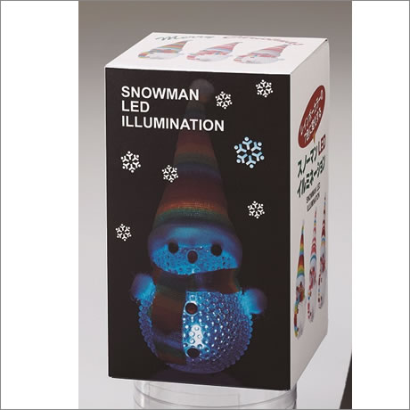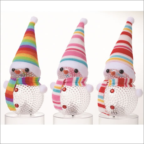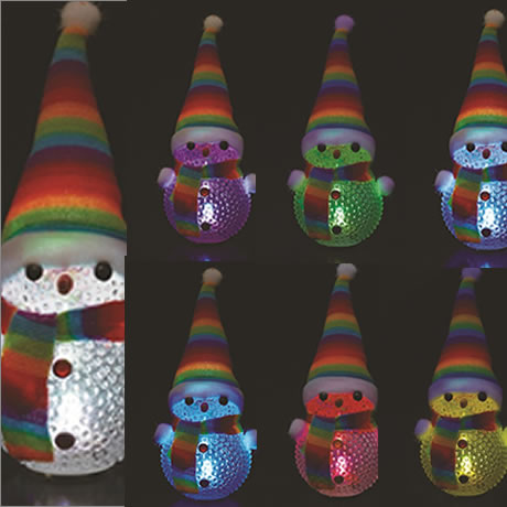 カラフルな帽子とマフラーをつけたスノーマンのLEDイルミネーション。