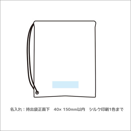 名入れ:持出袋正面下 40×150mm以内 シルク印刷1色まで