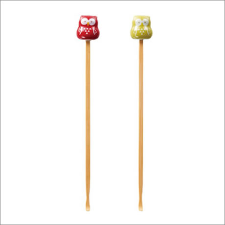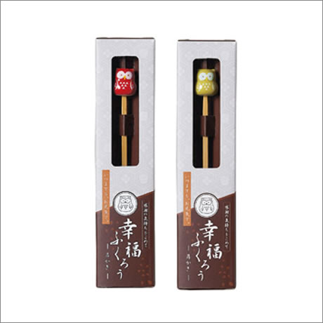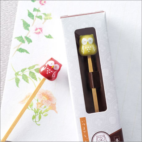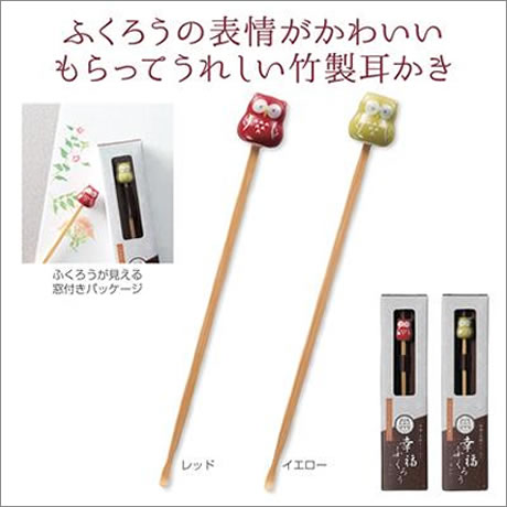 ちょこんとついたふくろうの表情のマスコット付き。竹製。