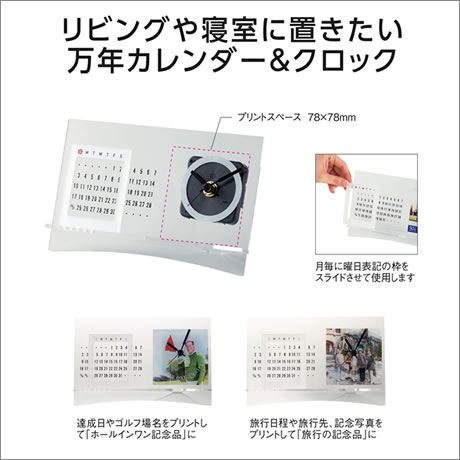 リビングや寝室、デスクに置きたい万年カレンダーにクロックが付きました。