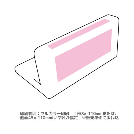 印刷範囲:フルカラー印刷 上部8×110mmまたは、側面45×110mmiいずれか指定 ※販売単価に版代込