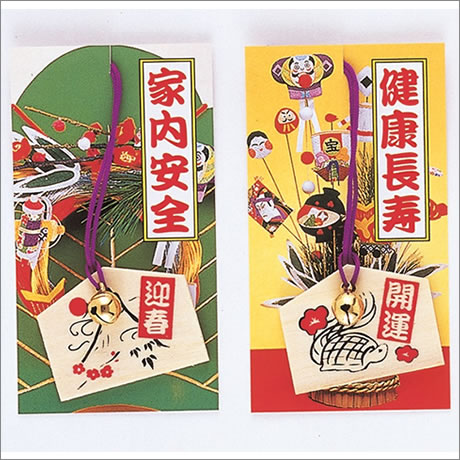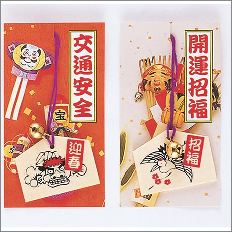 招福家運を願って、鈴付ききの絵馬根付けです。