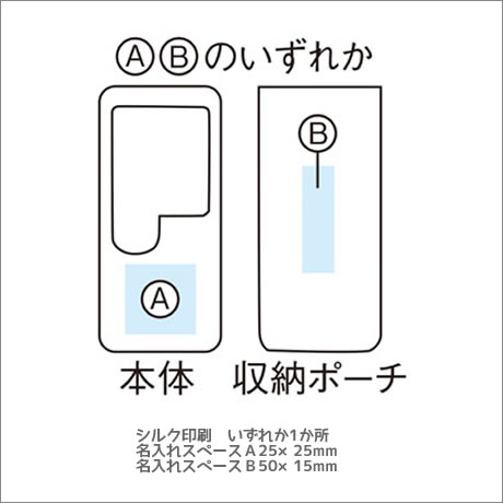 名入れスペースA本体 25×25mm 名入れスペースB中脳ポーチ 50×15mm |