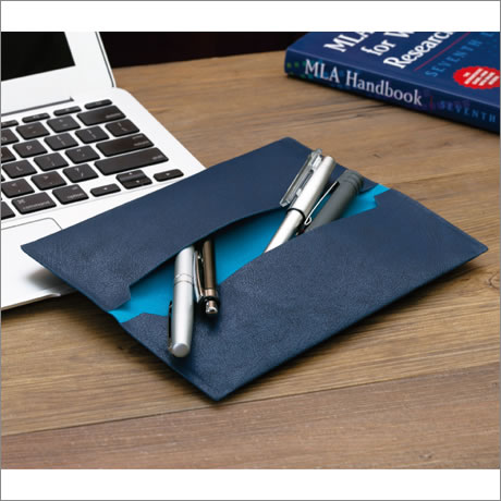 - カラモ レザー調ダブルペンケース(ネイビー)