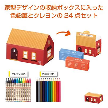 - 家型ボックス クレヨン&色鉛筆セット ※完売