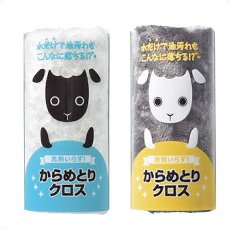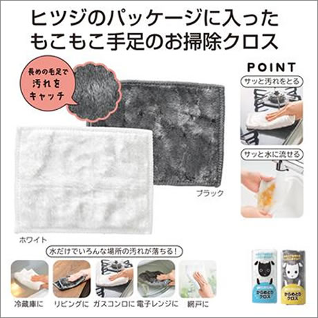 羊のパッケージに入った、モコモコ毛足のお掃除クロス。