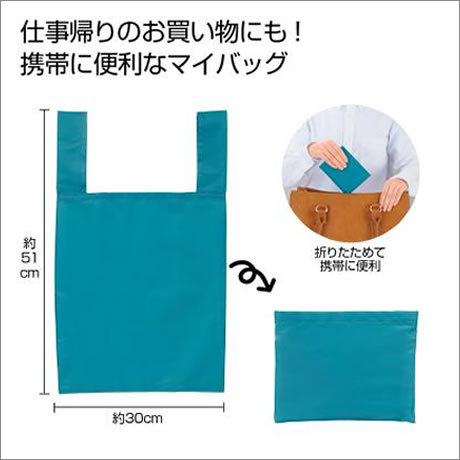 仕事帰りのお買い物にも。携帯に便利なマイバッグ。厚さ約1.2cm/重量約45g(※必ず現品でご確認ください)でポストインに最適。