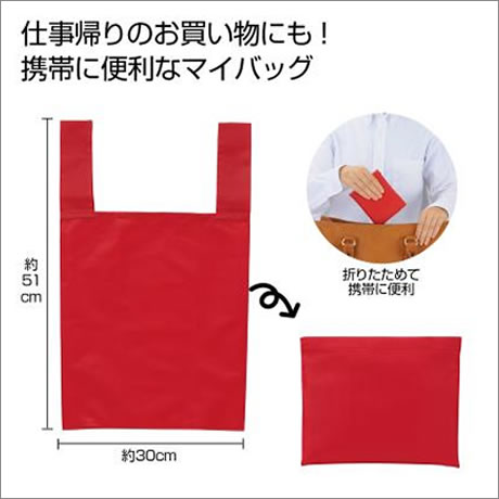 仕事帰りのお買い物にも。携帯に便利なマイバッグ。厚さ約1.2cm/重量約45g(※必ず現品でご確認ください)でポストインに最適。