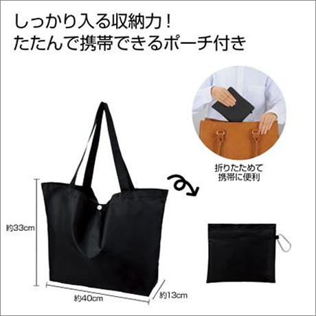 環境(“E”nvironment)に配慮する社会が常識になる生活で活躍するEcolorシリーズ。企業カラーに合わせてカラーチョイスができます しっかり入る収納力が自慢。たたんで携帯できるポーチ付き。厚さ約1.8cm/重量約80g(※必ず現品でご確認ください)でポストインに最適。