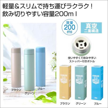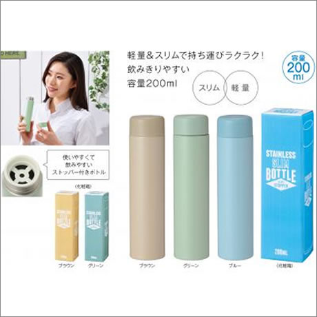 ストッパー付き真空ステンレススリムボトル200ml 1本