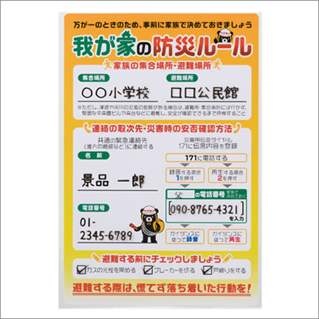 いつでも目に入るところに貼って、家族みんなで防災ルールの定着化