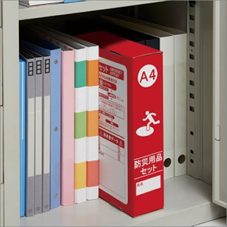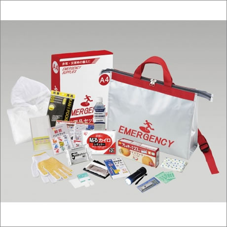 地震・災害などにより急いで避難を要する際に、一時避難場所又は広域避難場所までの移動を素早く行う為、最低限必要と思われる防災グッズをセットした避難セット。
