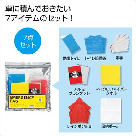 本体サイズ | 携帯トイレ/約13×25.5cm トイレ処理袋/約24.5×45cm アルミブランケット/約180×105cm 軍手/全長約22cm(フリーサイズ) レインポンチョ/約125×100cm マイクロファイバータオル/約30×30cm 収納ポーチ/22×26.5cm |
