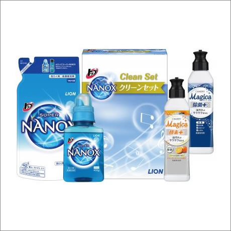 <セット内容> ・トップスーパーNANOX400g×1 ・トップスーパーNANOX320g(詰め替え用)×1 ・CHARMYMagica酵素+220ml(フルーティオレンジの香り)×1 ・CHARMYMagica220ml(除菌プラス)×1