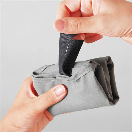 畳んでゴムで留めるだけでかさばらず携帯できます。