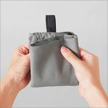 畳んでゴムで留めるだけでかさばらず携帯できます。
