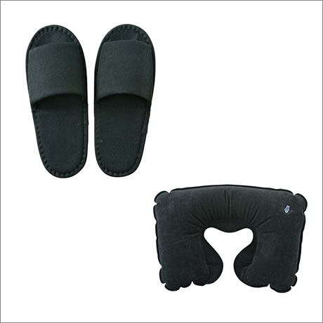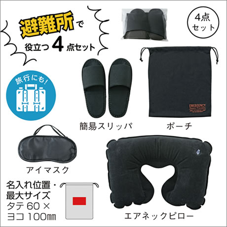 セット内容:ポーチ、アイマスク、エアネックピロー、簡易スリッパ×各1