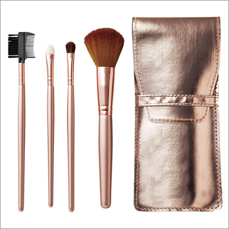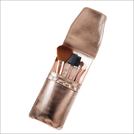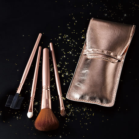 ブラシの持ち手もケースもシャイニーゴールド。パーティーのような華やかさは使うたびに気分が上がります。