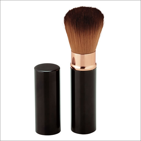 肌当たりの良いコスメブラシをツヤのあるスティックに収めました。ポーチも汚さず持ち運べて快適。