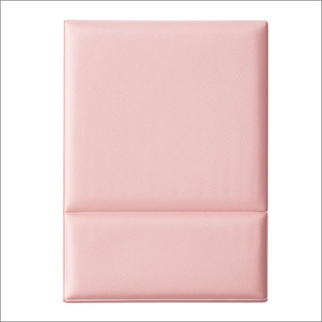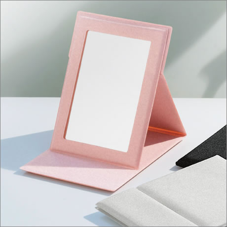 ミラーのフチは肌に触れないフレーム付き。サフィアーノ調生地が高級感を演出します。