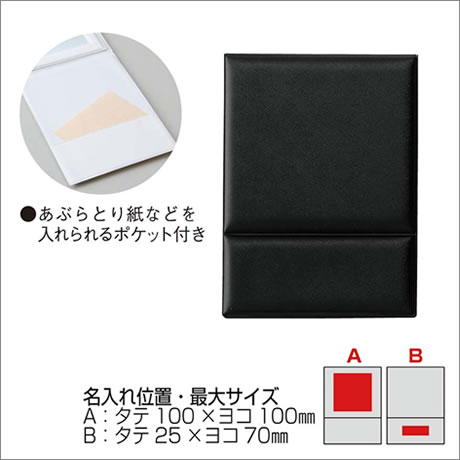 ミラーのフチは肌に触れないフレーム付き。サフィアーノ調生地が高級感を演出します。