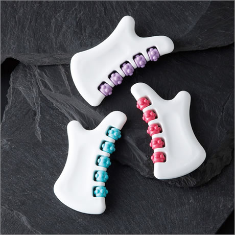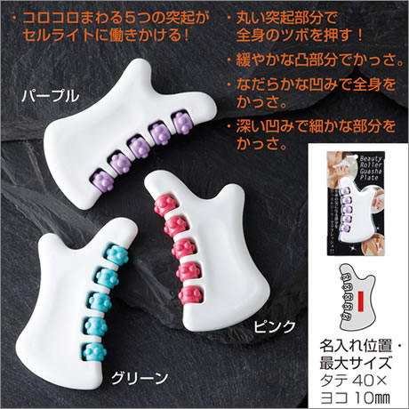 押したり流したり、全身に使える!ローラーと一体となった、機能的カッサプレート。