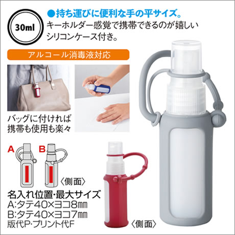 シリコンケース付きスプレーボトル30ml(グレー) 印刷可