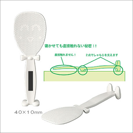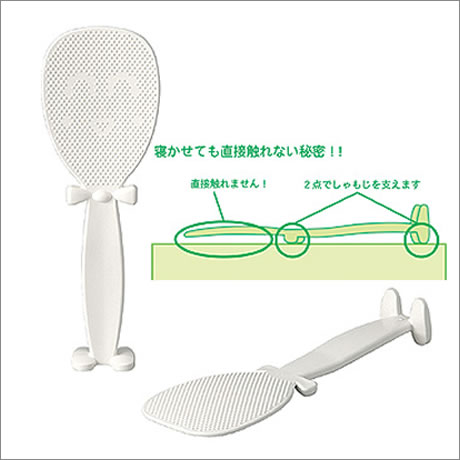 足があるので立てる事が出来、寝かせてもしゃもじ表面は床に接地しない構造になっている清潔安心設計です。