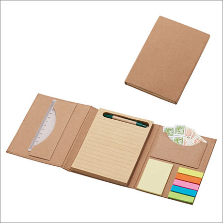 再生紙を利用したエコロジーで実用的な、携帯にも向く付箋セットです。
